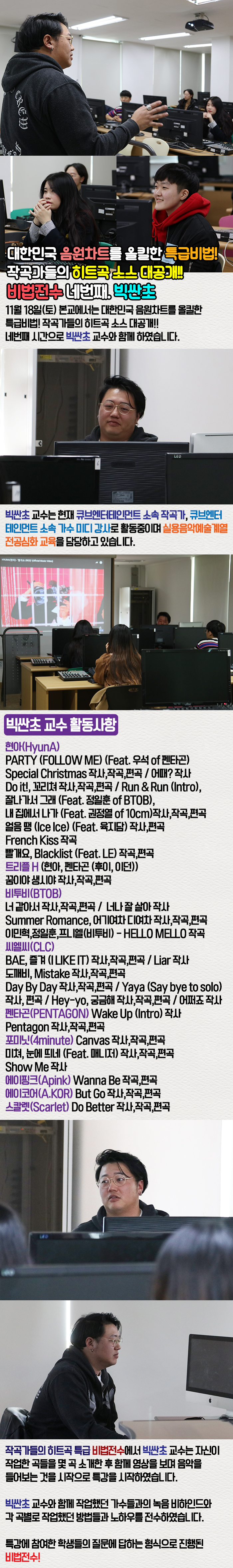 11월 18일(토) 본교에서는 대한민국 음원차트를 올킬한 특급비법!
