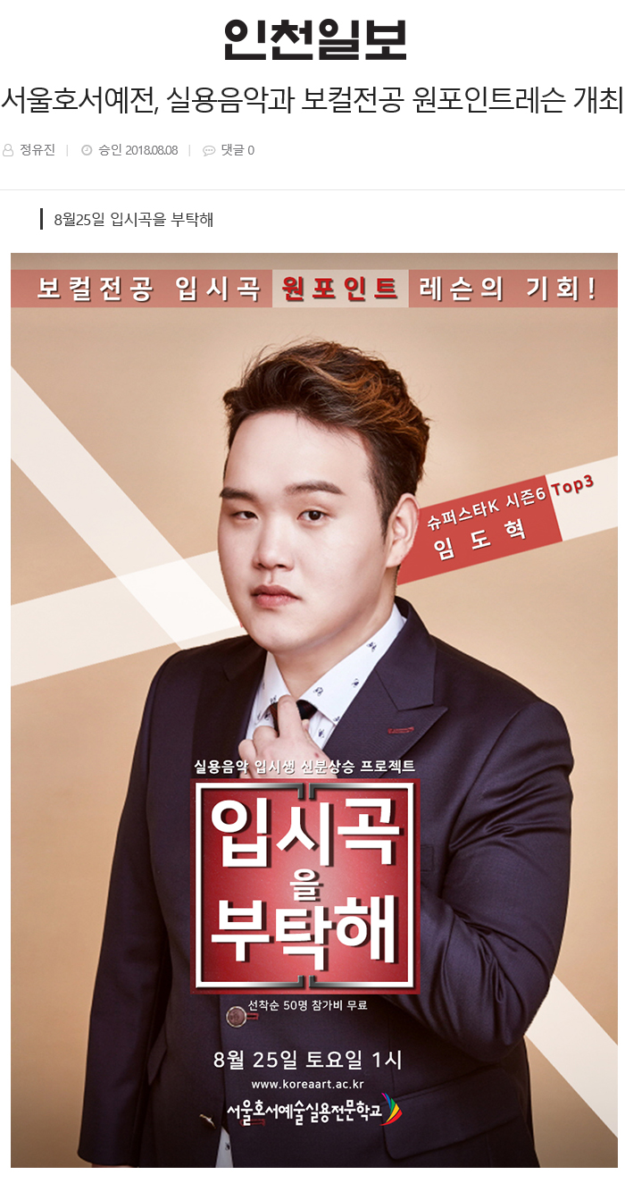 [인천일보]실용음악과 보컬전공 희망 학생들을 위한 원포인트레슨 개최