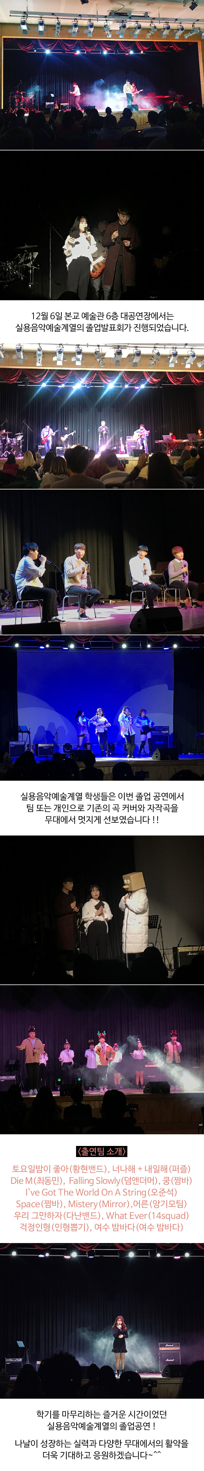 12월 6일 본교 예술관 6층 대공연장에서는 실용음악예술계열의 졸업발표회가 진행되었습니다.