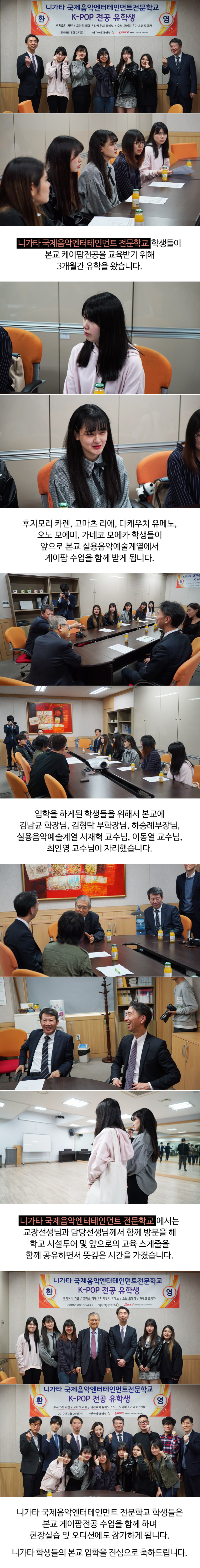 니가타 국제음악엔터테인먼트 전문학교 학생들이 본교 케이팝전공을 교육받기 위해 3개월간 유학을 왔습니다.