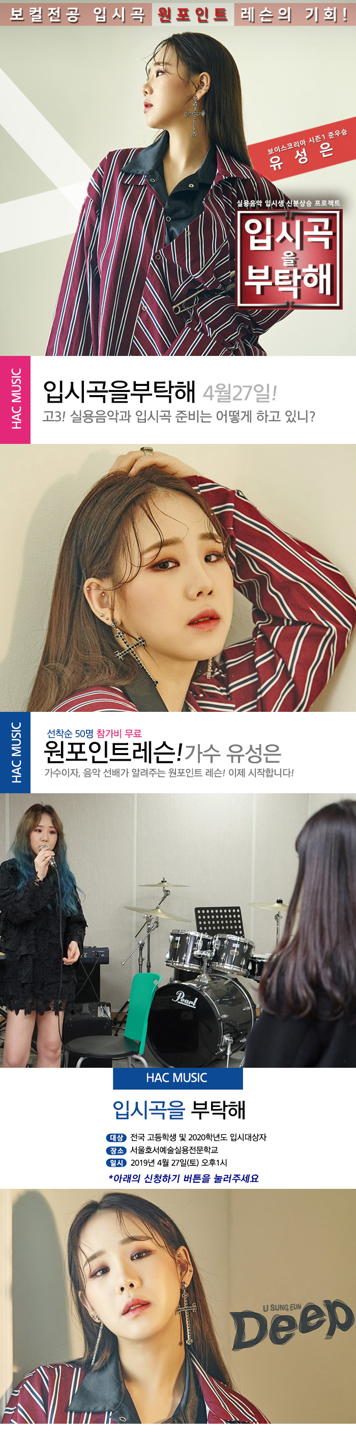 실용음악과를 희망하는 고등학생들을 위한 <입시곡을부탁해>가 아래와 같이 진행됩니다. 관심있는 학생들의 많은 참여 바랍니다.