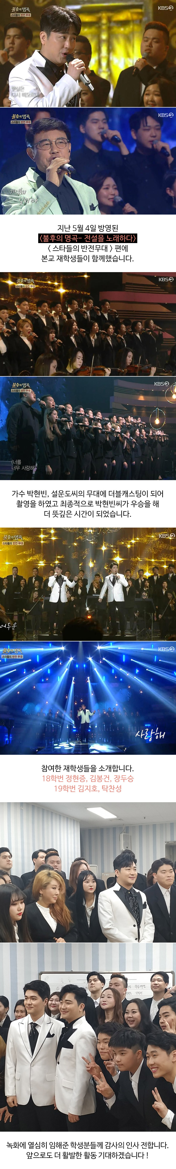 지난 5월 4일 방영된 '불후의 명곡 - 전설을 노래하다. 스타들의 반전무대' 편에 본교 재학생들이 함께했습니다.