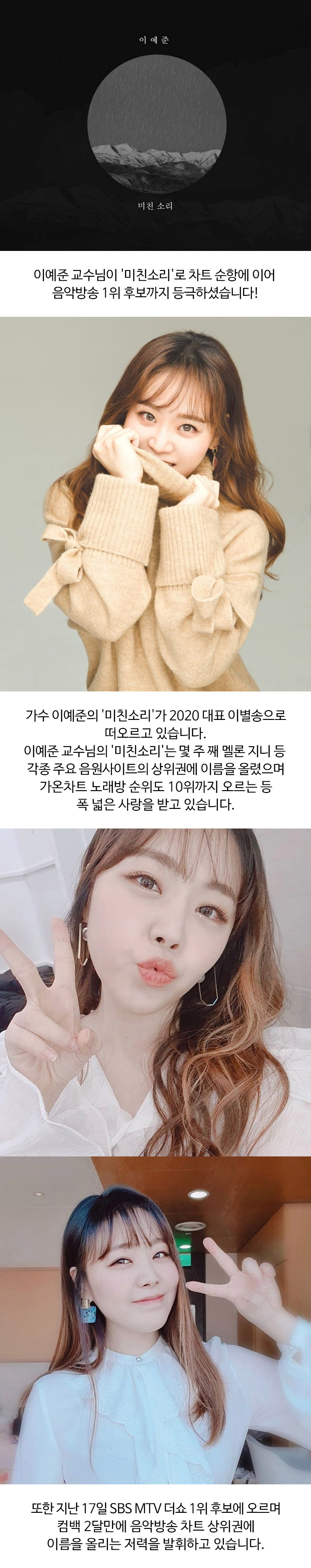 이예준 교수님이 '미친소리'로 차트 순항에 이어 음악방송 1위 후보까지 등극하였습니다!