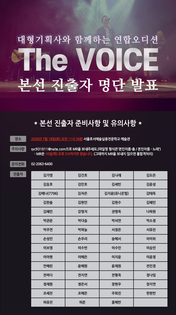 대형기획사와 함께하는 연합오디션 'The VOICE' 본선 진출자 명단 발표