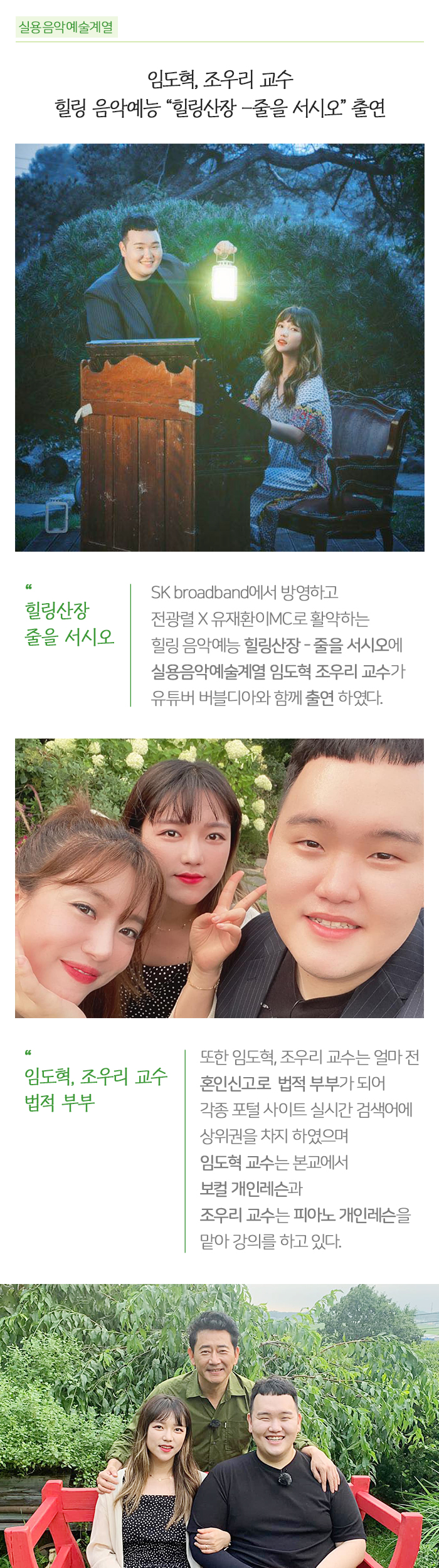 실용음악예술계열 임도혁, 조우리 교수 힐링 음악예능 힐링산장 - 줄을 서시오 출연