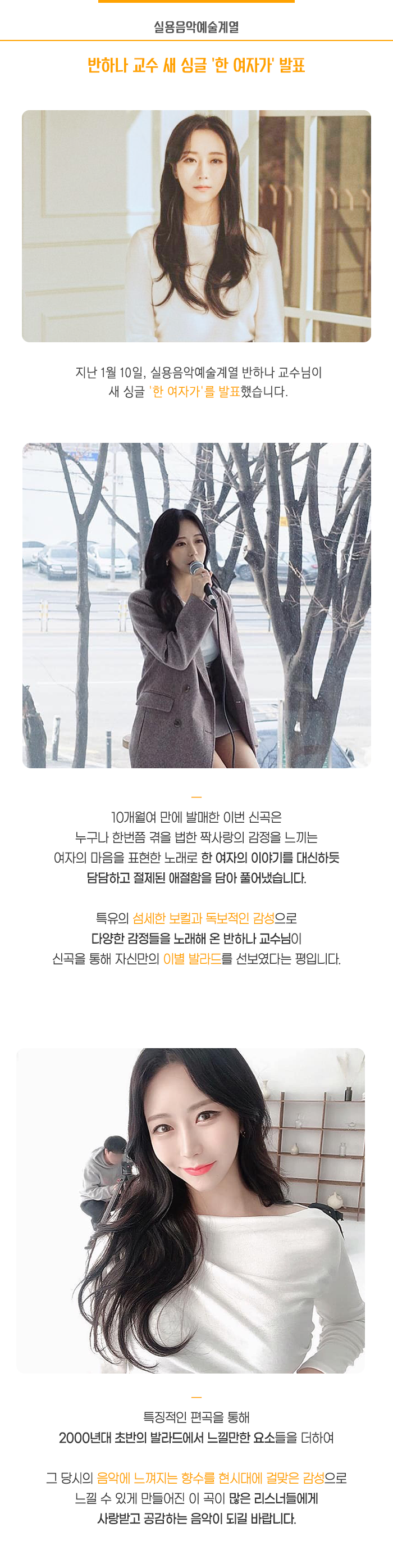 실용음악예술계열 반하나 교수 새 싱글 '한 여자가' 발표