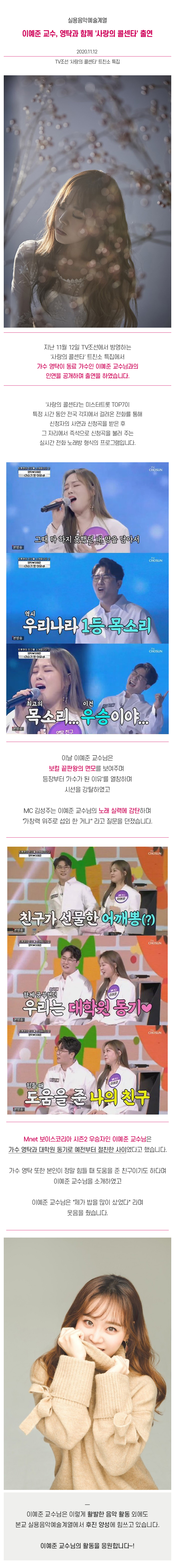 실용음악예술계열 이예준 교수, 영탁과 함께 '사랑의 콜센타' 출연