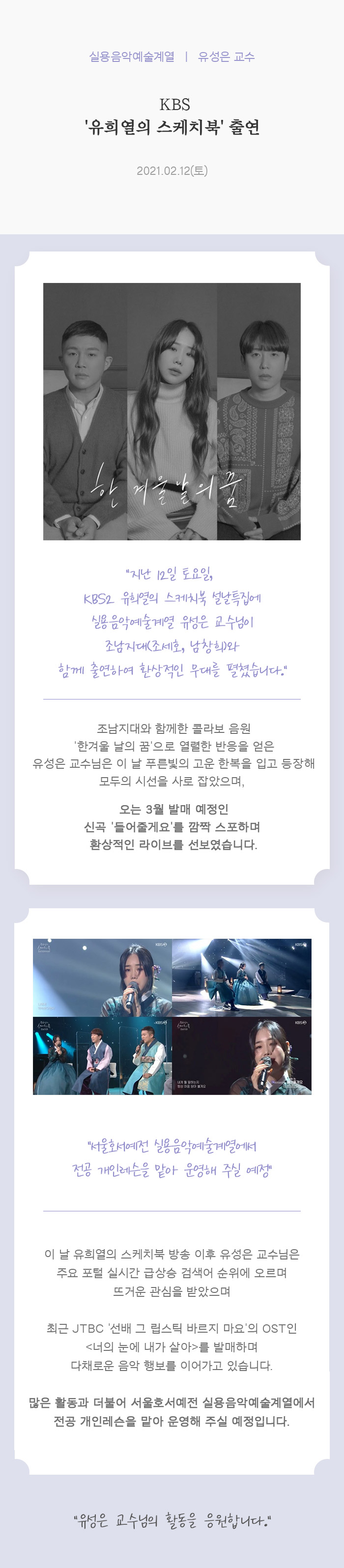 실용음악예술계열 유성은 교수, KBS '유희열의 스케치북' 출연