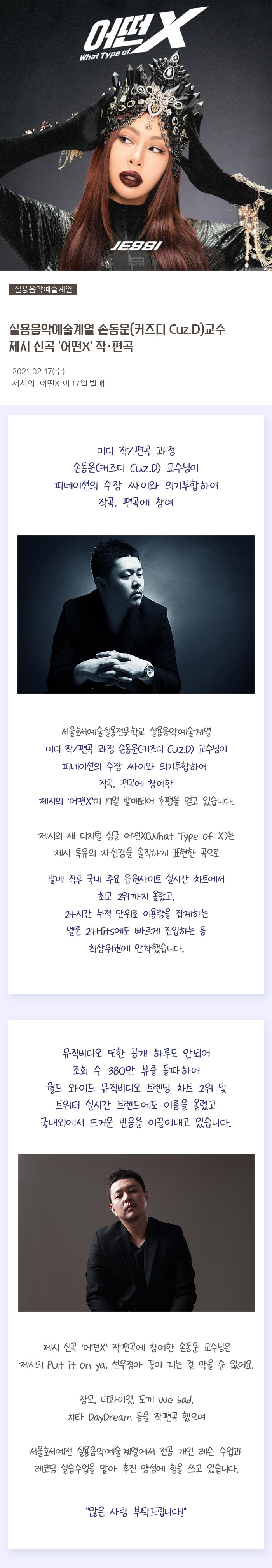 실용음악예술계열 손동운(커즈디 Cuz.D)교수, 제시 신곡 '어떤X' 작·편곡