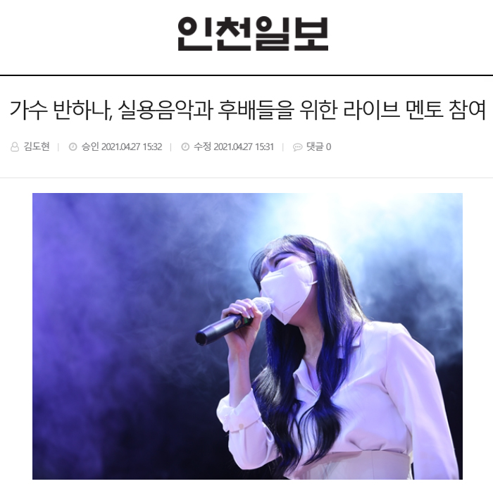 [언론보도]가수 반하나, 실용음악과 후배들을 위한 라이브 멘토 참여