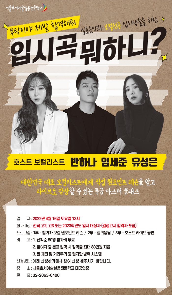 실용음악과 입시생들을 위한 2022 입시곡 뭐하니가 개최됩니다. 많은 신청 바랍니다.?