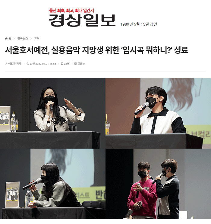 [언론보도] 실용음악 지망생 위한 ‘입시곡 뭐하니?’ 성료