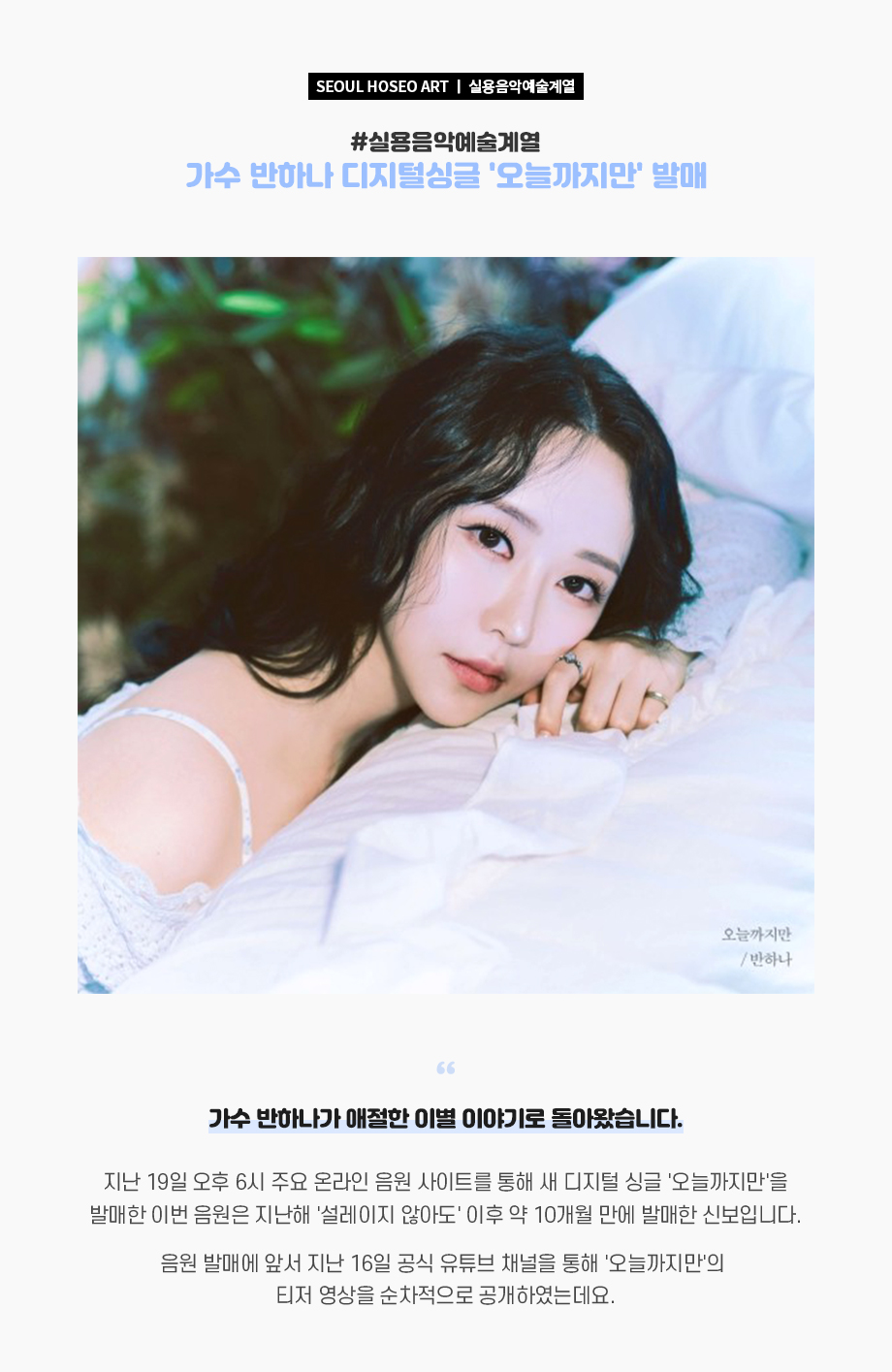 실용음악예술계열 가수 반하나 디지털싱글 '오늘까지만' 발매