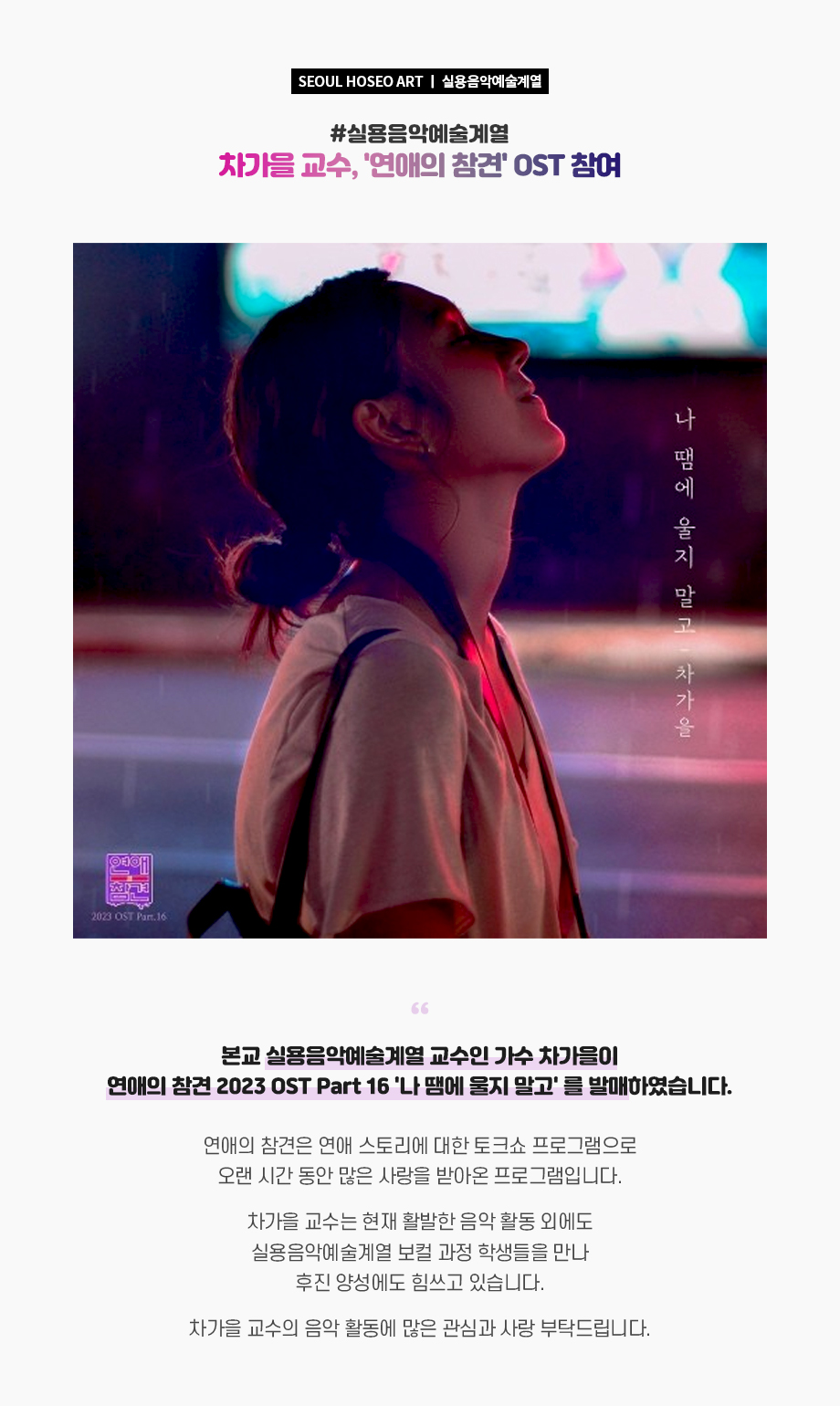 실용음악예술계열 차가을 교수, '연애의 참견' OST 참여