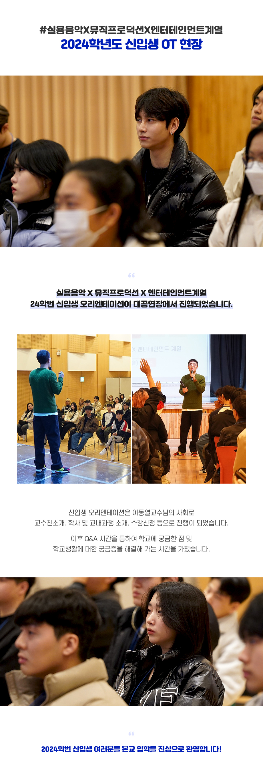 실용음악X뮤직프로덕션X엔터테인먼트계열 2024학년도 신입생 OT 현장