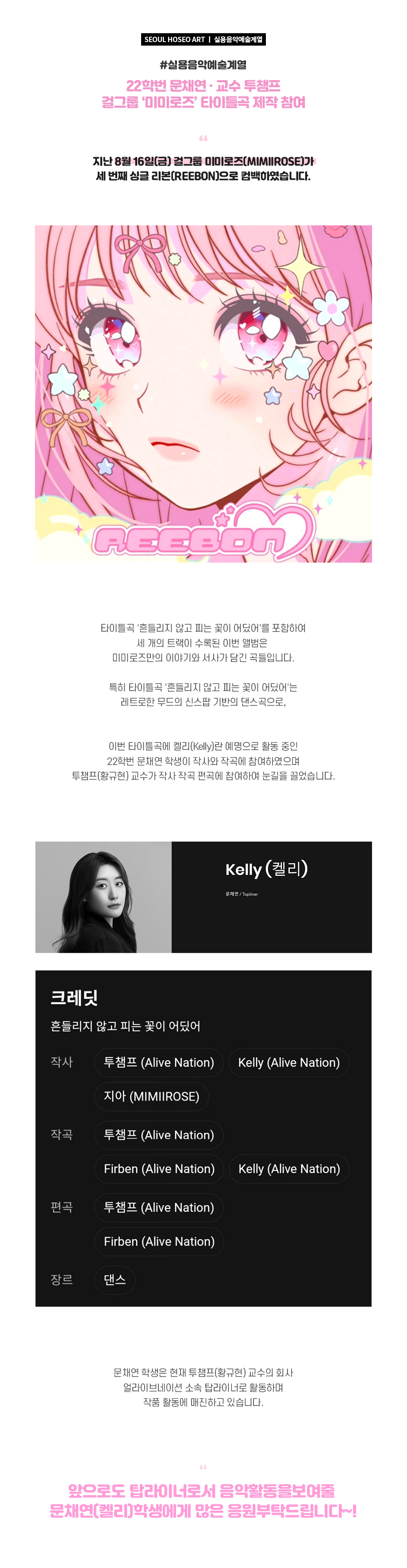실용음악예술계열 22학번 문채연, 교수 투챔프 걸그룹 '미미로즈' 타이틀곡 제작 참여