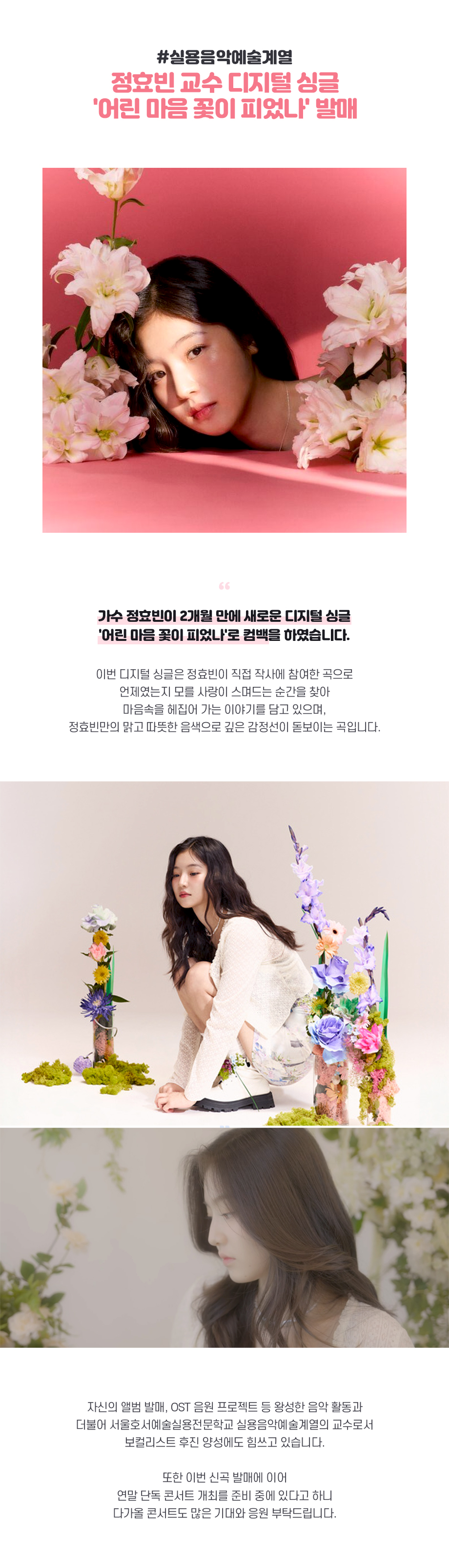 실용음악예술계열 정효빈 교수 디지털 싱글 '어린 마음 꽃이 피었나' 발매