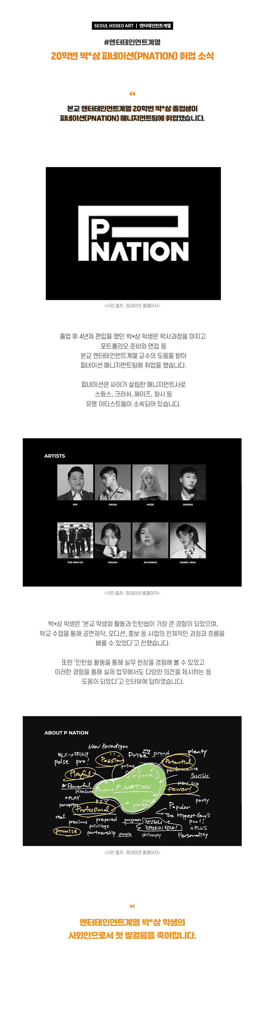 엔터테인먼트계열 20학번 박*상 피네이션(PNATION) 취업 소식