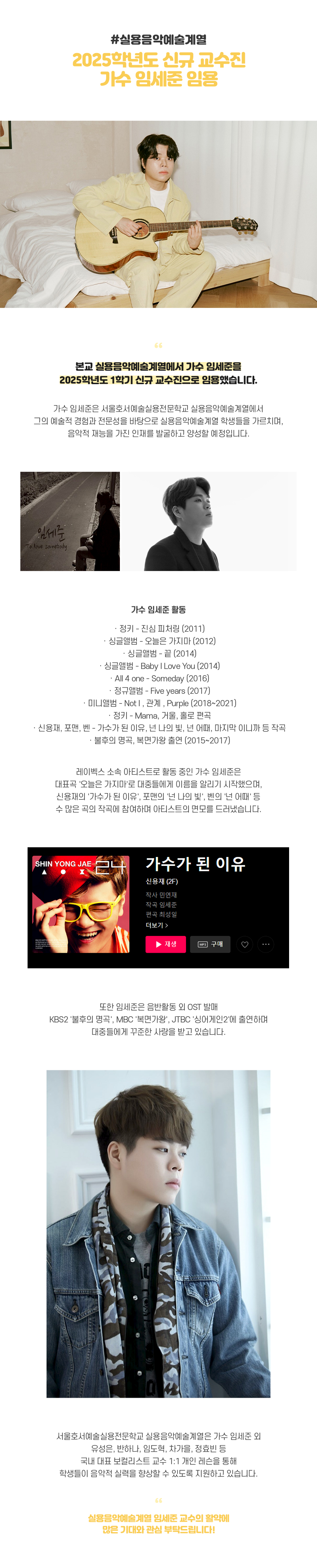 실용음악예술계열 2025학년도 신규 교수진 가수 임세준 임용