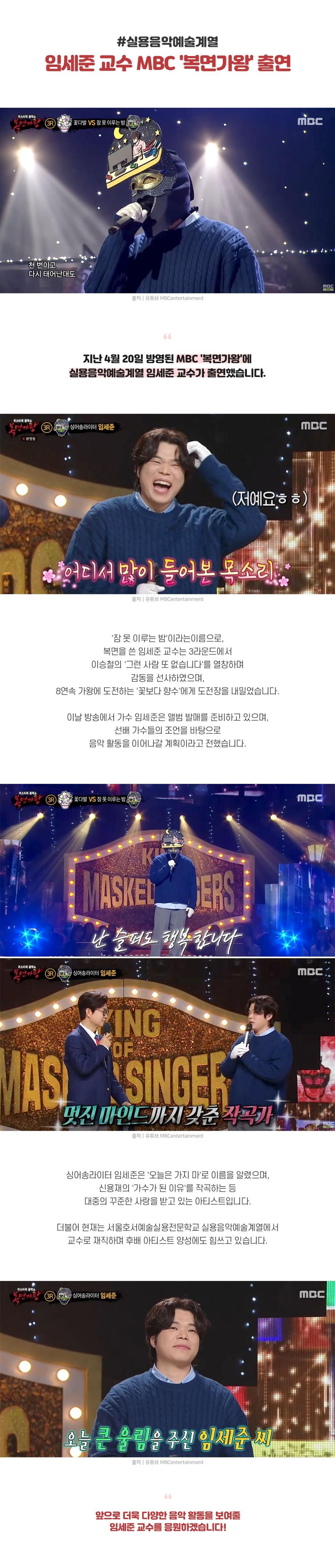 지난 4월 20일 방영된 MBC '복면가왕'에 실용음악예술계열 임세준 교수가 출연했습니다. 지난 4월 20일 방영된 MBC '복면가왕'에 실용음악예술계열 임세준 교수가 출연했습니다.