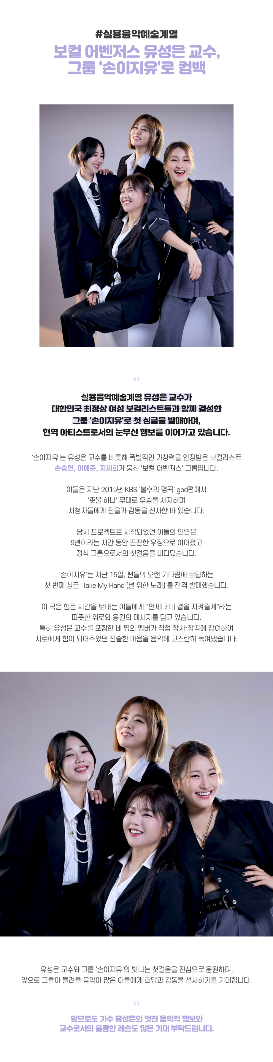 실용음악예술계열 보컬 어벤저스 유성은 교수, 그룹 '손이지유'로 컴백
