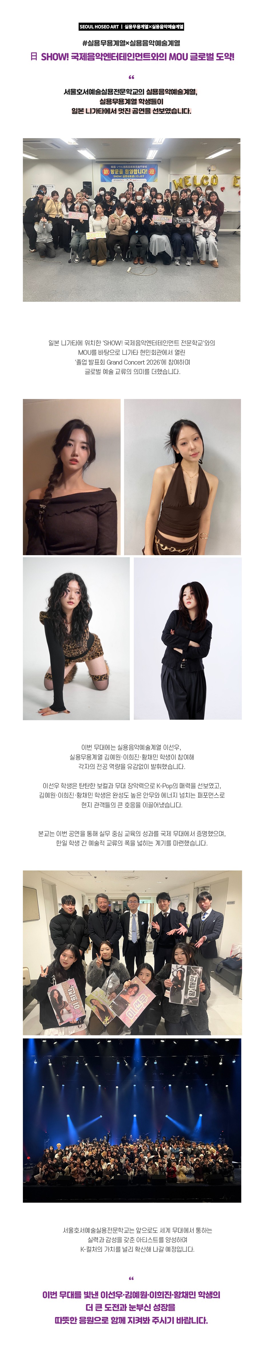 일본 니가타에 위치한 'SHOW! 국제음악엔터테인먼트 전문학교'와의 MOU를 바탕