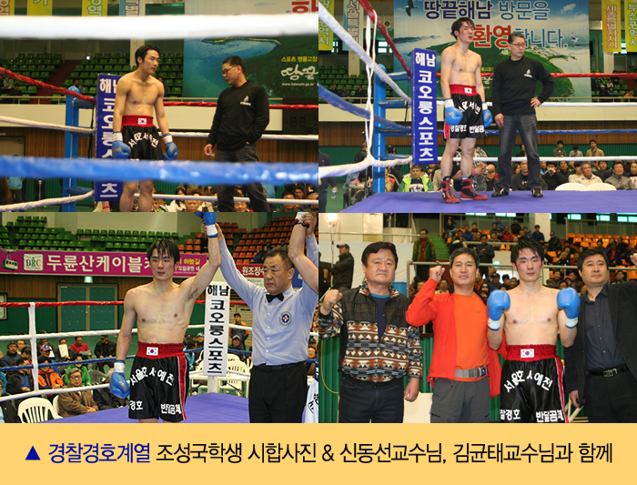 위의 경기가 시작 되기 전 경찰경호계열 조성국학생이 해남권투에 출전을 해서 멋진 시합을 펼쳤습니다.