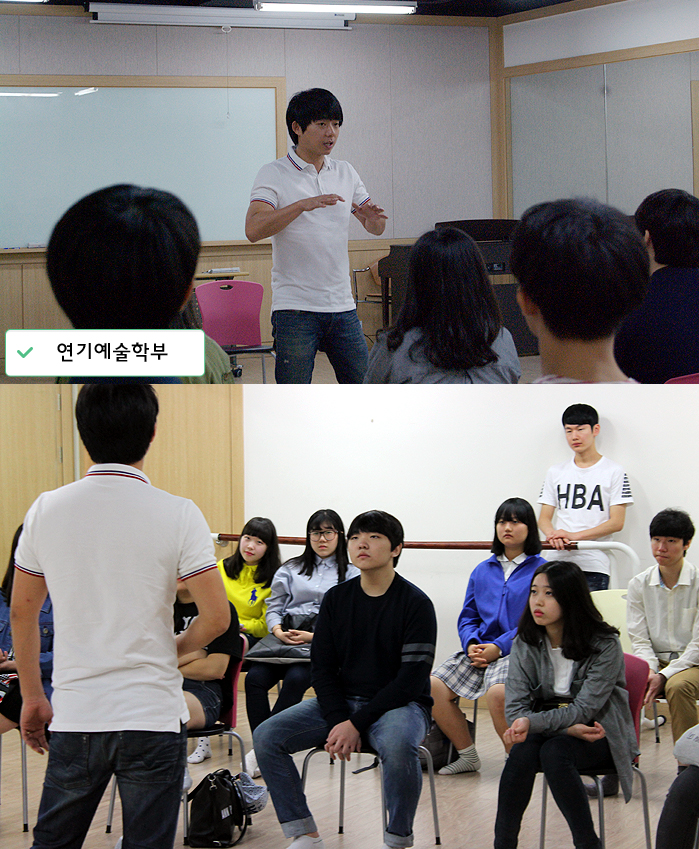 연기예술학부 진로체험학교는 위명우 교수의 '무대 연기와 카메라 연기의 차이' 수업이었습니다.