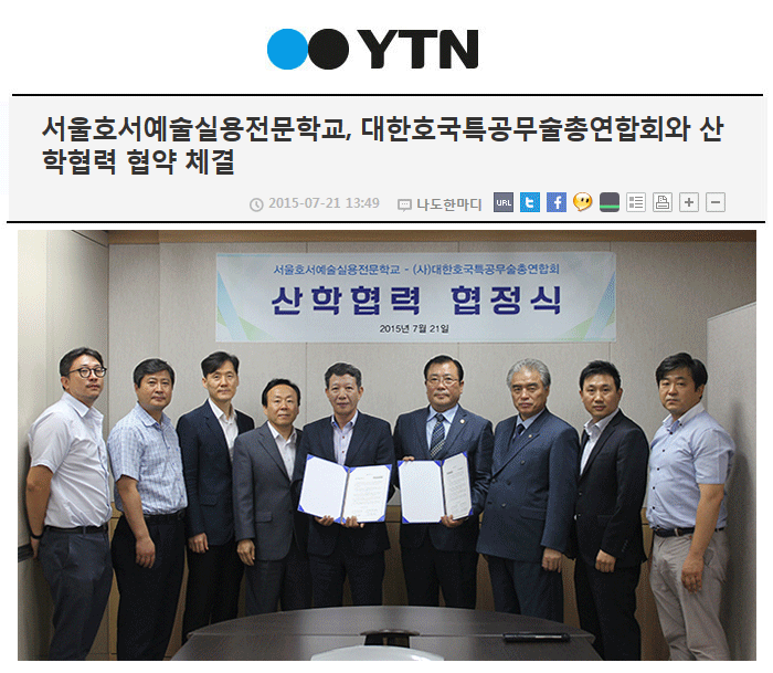 오늘(21일) 서울호서예술실용전문학교에서 열린 이번 협정에 따라 양 기관은 앞으로 지속적인 교육 교류와 서울호서예술실용전문학교 학생들의 경찰, 경호, 도장 관장 사범 분야로의 진출을 위한 상호협력을 이어간다.