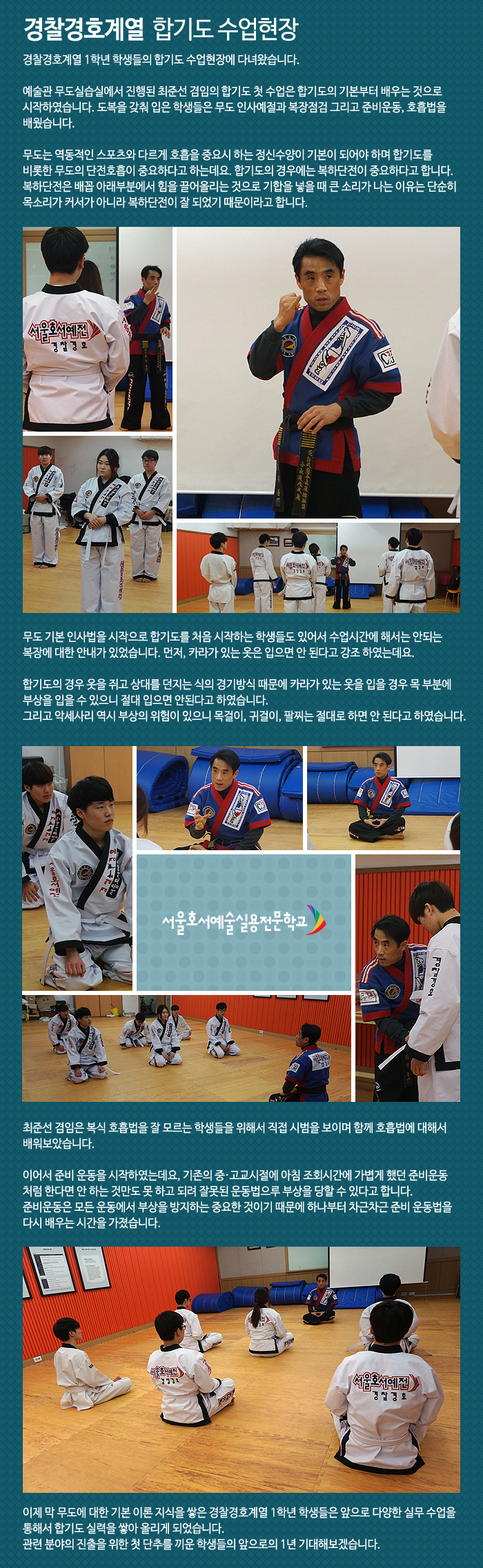 경찰경호계열 1학년 학생들의 합기도 수업현장에 다녀왔습니다.