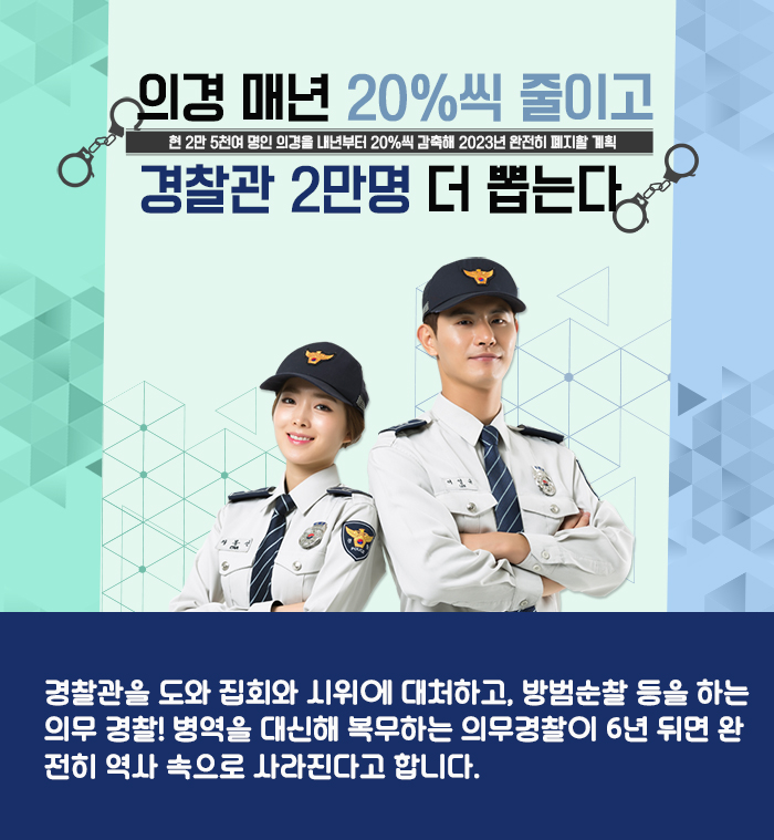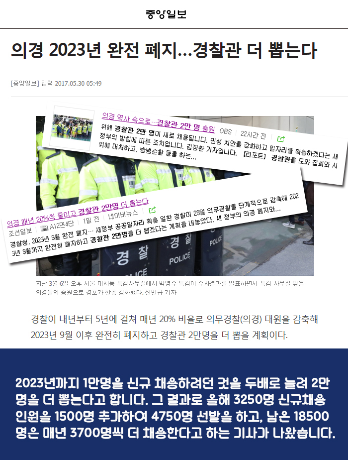 의경 매년 20%씩 줄이고, 경찰관 2만명 더 뽑는다.