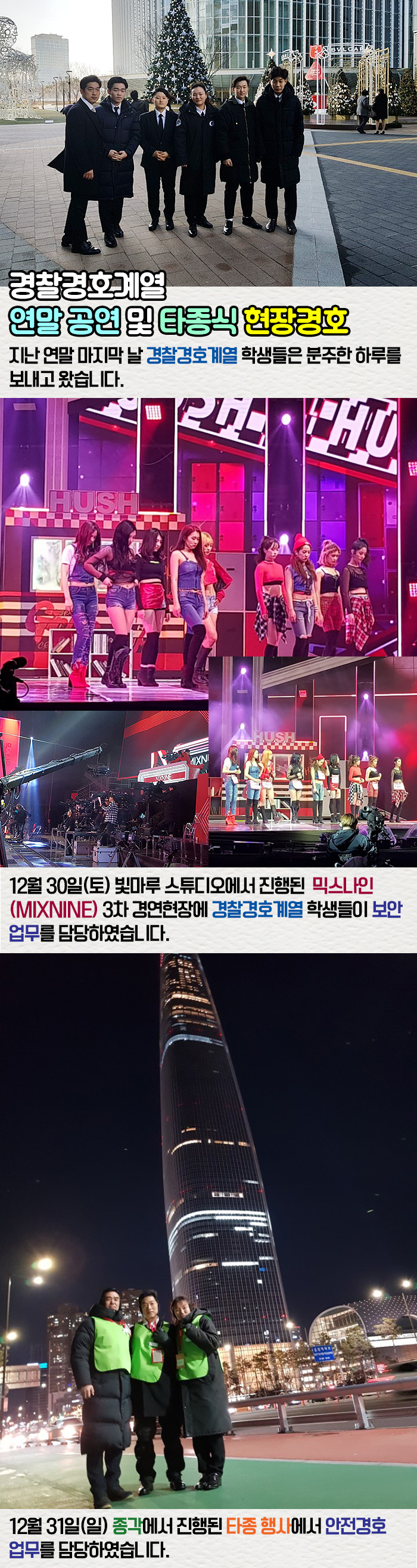 경찰경호계열 학생들이 연말 공연 및 종각에서 진행된 타종 행사의 안전경호 업무를 하였습니다.