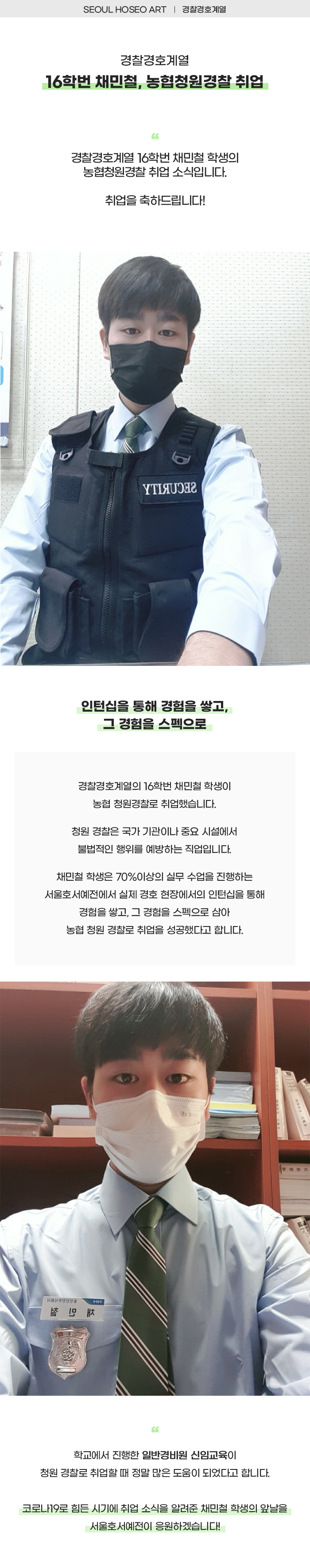 경찰경호계열 16학번 채민철, 농협청원경찰 취업