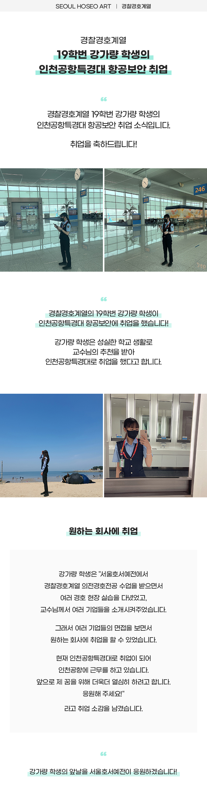 경찰경호계열 19학번 강가량, 인천공항특경대 항공보안 취업