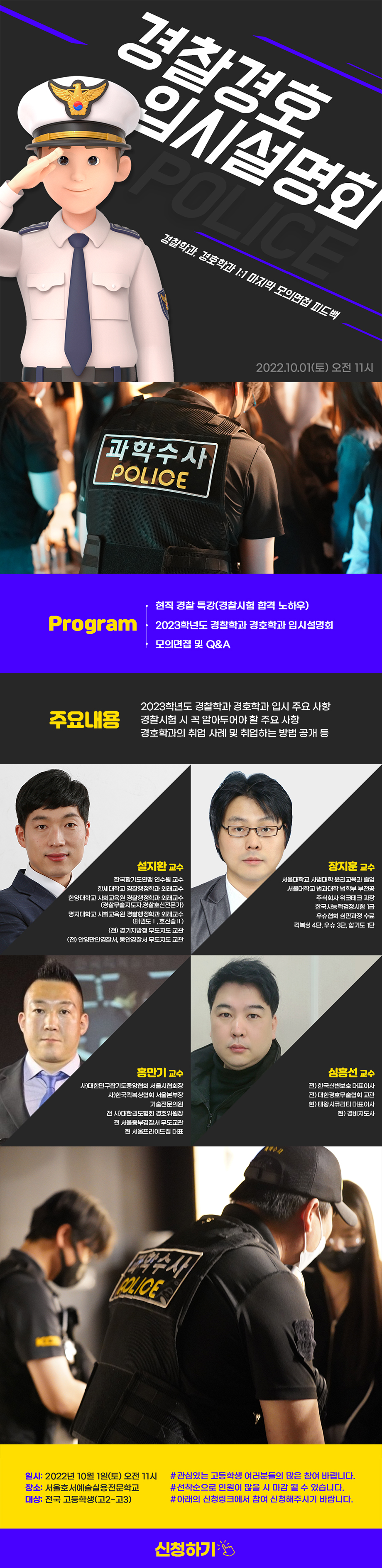 서울호서예술실용전문학교 경찰경호계열 2022 경찰경호 입시설명회 경찰학과, 경호학과 1:1 마지막 모의면접 피드백 신청하기