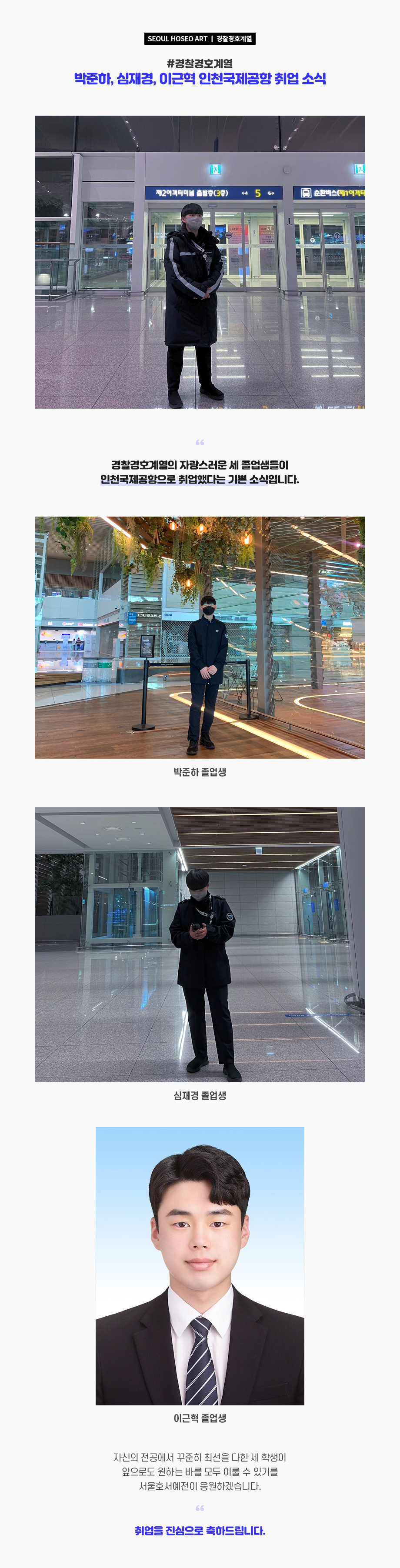경찰경호계열 박준하, 심재경, 이근혁 인천국제공항 취업 소식