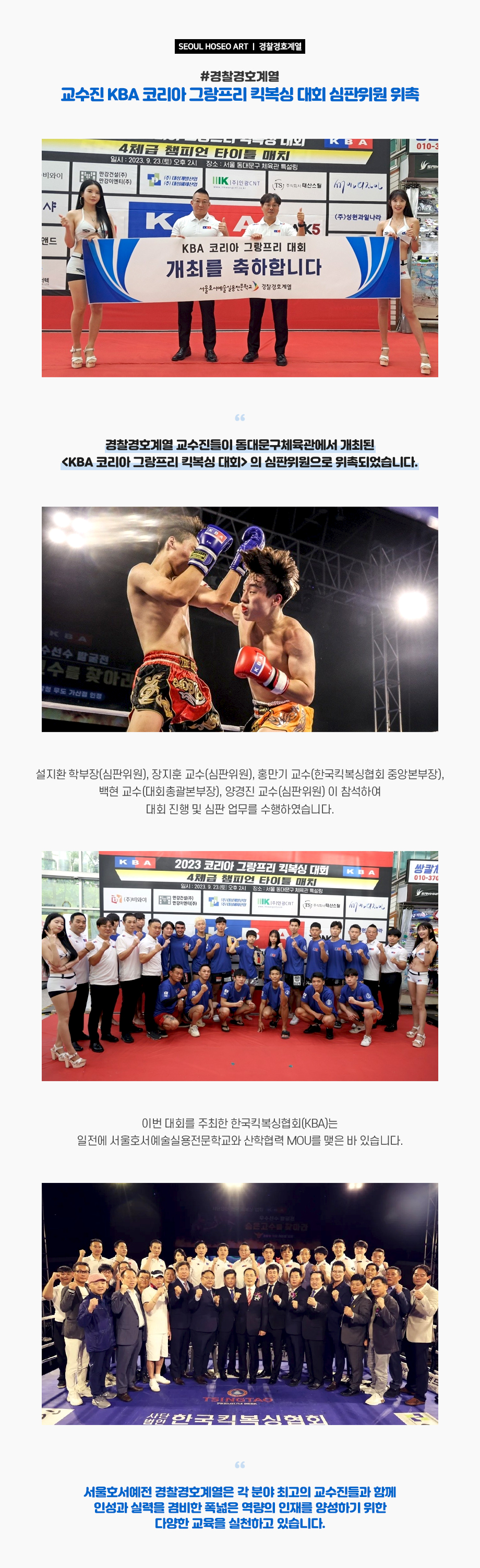 경찰경호계열 교수진 KBA 코리아 그랑프리 킥복싱 대회 심판위원 위촉