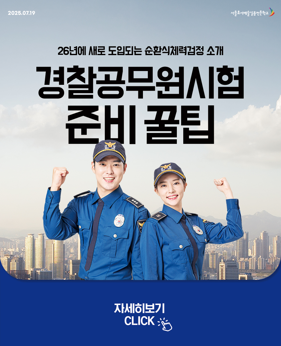 서울호서예술실용전문학교 경찰경호계열 26년에 새로 도입되는 순환식체력검정 소개 경찰공무원시험 준비 꿀팁 신청하기