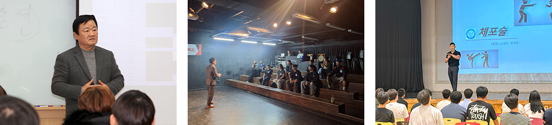 경찰간부 출신과 경호업체 대표·실무책임자 등 다양한 현장 경력을 갖춘 교수진이, 일선 경호현장에서 축적한 실무 경험을 바탕으로 현장 중심의 경호 운영을 교육하며, 현장감과 입체감이 살아 있는 수업을 제공합니다.