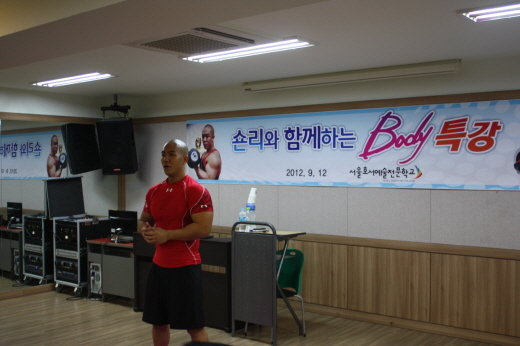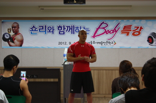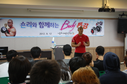 본교에서는 9월 12일 오후 4시부터 스타 트레이너로 유명한 숀리가 직접 시범을 보이며 펼친 “스포츠건강관리계열 숀리의 바디특강“이 진행됐다.