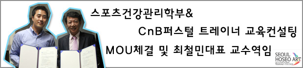 MOU체결 및 최철민 대표 교수임용을 통하여 본교와 CnB 퍼스널 트레이너 교육컨설팅은 상호교육의 질을 높이고 사회에 공헌, 전문예술인 양성 및 교육의 내실화를 기하며 인적교류를 위해 협정서를 체결하게 되었습니다. 앞으로 다양한 활동 기대하겠습니다!