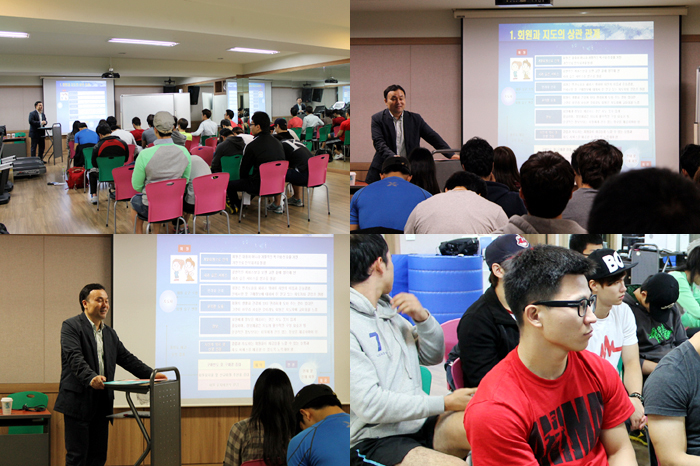 스포츠건강관리학부 학생들에게는 트레이너로서 회원과 원만한 관계를 유지하는 방법 및 스포츠컨설팅의 전반적인 방법과 고객유치방법, 개인으로써의 마음가짐에 대한 특강이 있었습니다.