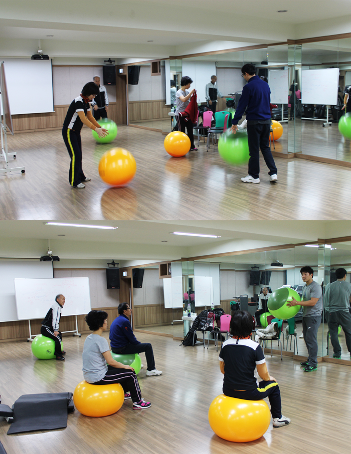 이날 최철민 교수님께서 강조하신 짐볼운동은 허리를 튼튼하게 해주기위한 트레이닝을 주로 진행되었답니다.