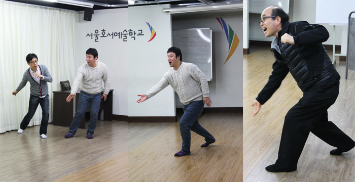 대사의 템포와 리듬을 줘야만 다이나믹하고 전달이 잘되는 대사가 완성되기 때문에 선생님들께서 멈칫하시고 주어,서술을 생각하시느라 진땀아닌 진땀이ㅋ