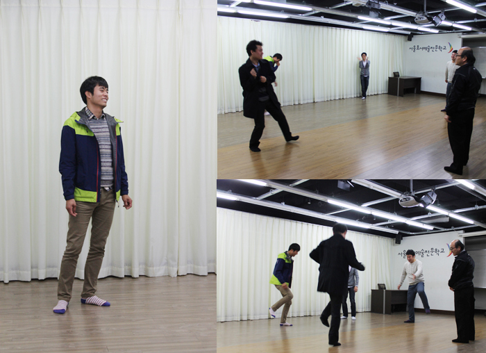 3일차 수업에서는 실제로 모든 소품들을 구비하기 어려운 연극무대에서 많이 하는 마임연기를 배웠는데요. 상상 속에 야구공&볼링공이 있다고 생각하고 상대방에게 던지는 수업부터 진행되었어요.
