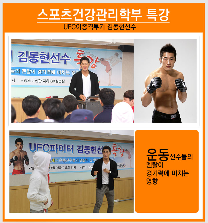 김동현 선수가 본교 스포츠건강관리학부에서 특강한다는 소식, 얼마 전에 전해드렸었죠?
