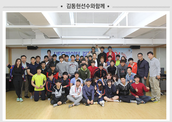 우리 스포츠건강관리학부 학생들 중에서도 김동현 선수 같은 멋진 선수, 코치, 교육인 등이 나올 거라 믿어요!