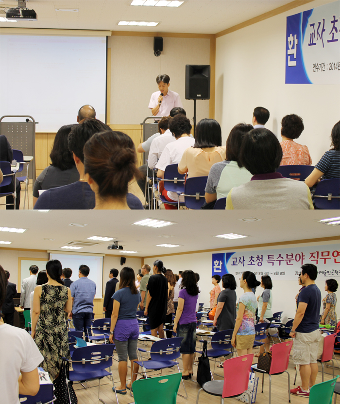 8월 4일 본교 예술관 501호에서 2014년도 하계 특수분야 직무연수 개강식이 진행되었습니다.