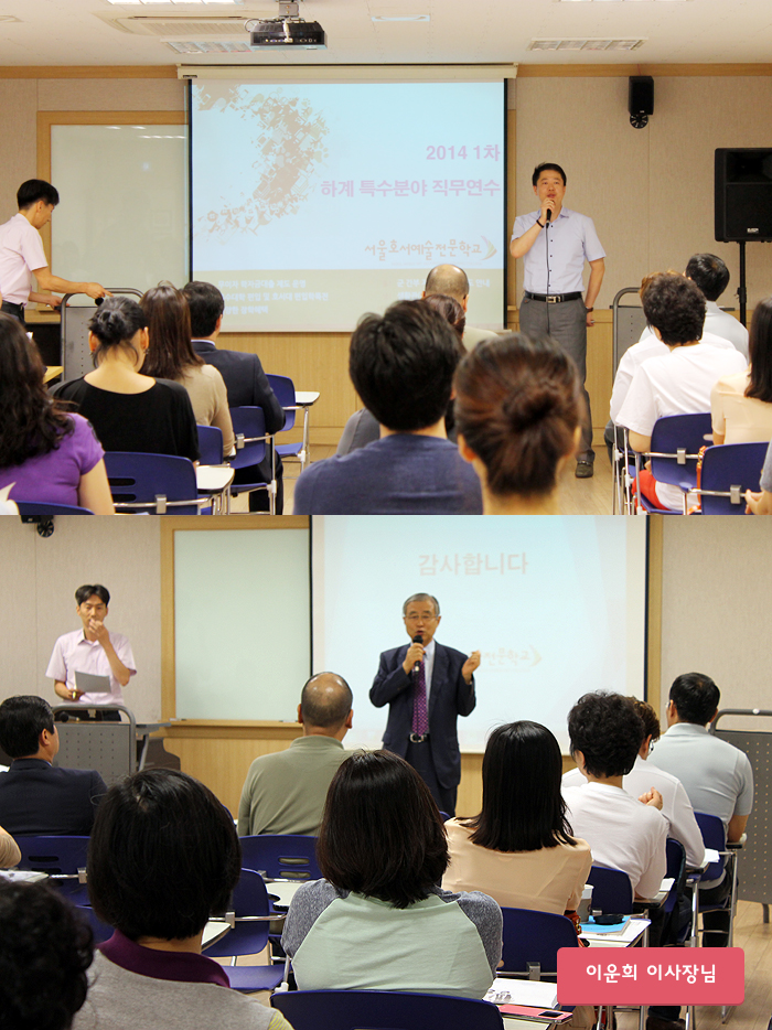 이운희 이사장님도 방문하셔서 2014년도 하계 특수분야 직무연수 개강식에 참여하신 선생님들에게 환영의 인사를 해주셨습니다.