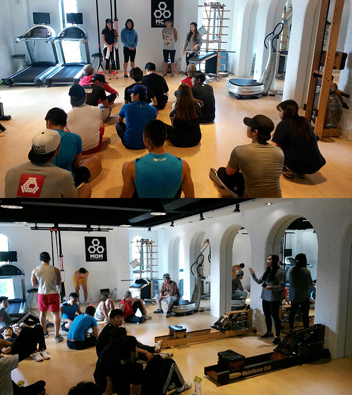 박수희 교수는 먼저, 기계들에 대한 간단한 이해와 우리의 몸의 밸런스가 얼만큼 중요한지 스포츠건강관리학부 재학생들에게 재차 확인시켜주는 이론수업을 진행한 뒤 MOM BALANCE의 밸런서들과 함께 실습을 해보는 시간을 가졌습니다.
